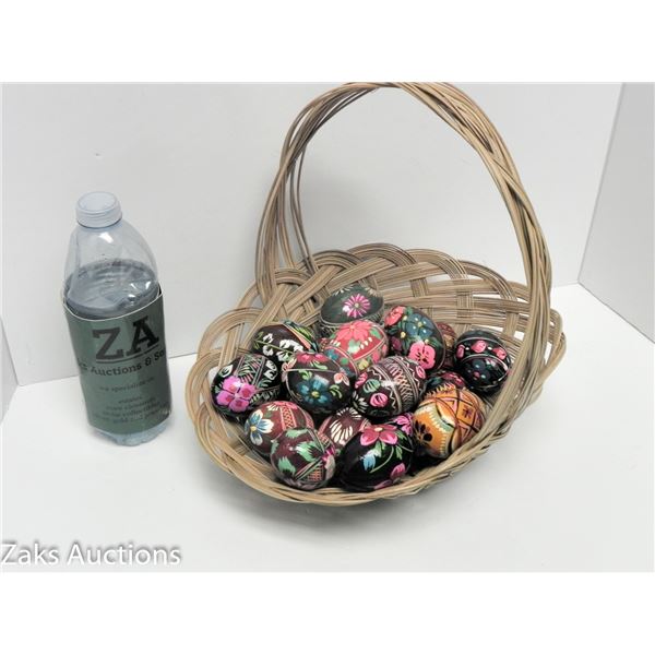 BASKET OF 20 UKRAINIAN PYSANKA EASTER EGGS