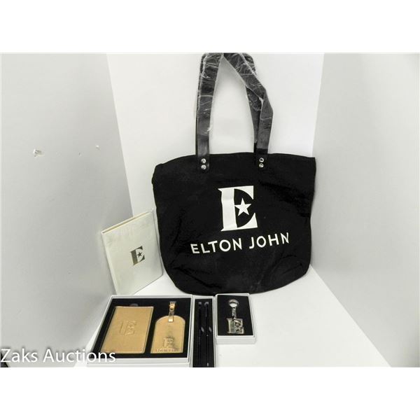 ELTON JOHN AUTHENTIC MERCHANDISE - SATCHEL, VIP PASS, PEN/PENCIL SET, KEYCHAIN, NOTE BOOK,