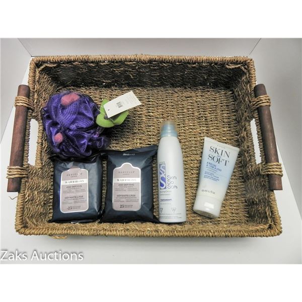 SEA GRASS BASKET OF NEW SKIN CARE, SHAVING CREAM WITH BATH SPONGE