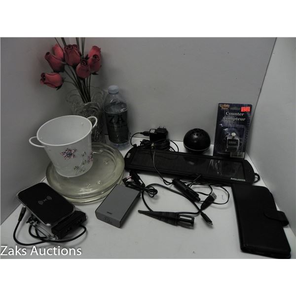 MISC BOX - CHARGING STATIONS, PLANT PLATES, ROSES IN GLASS VASE