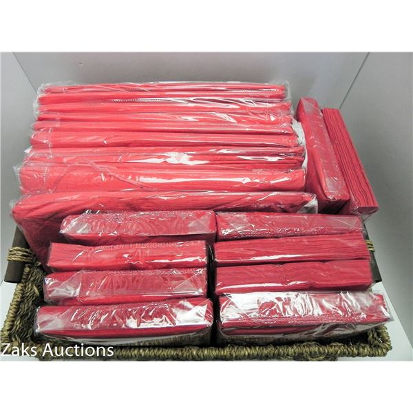 BASKET OF RED - 10 PAPER TABLE CLOTHS AND 10 PKGS OF RED NAPKINS