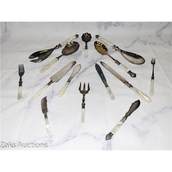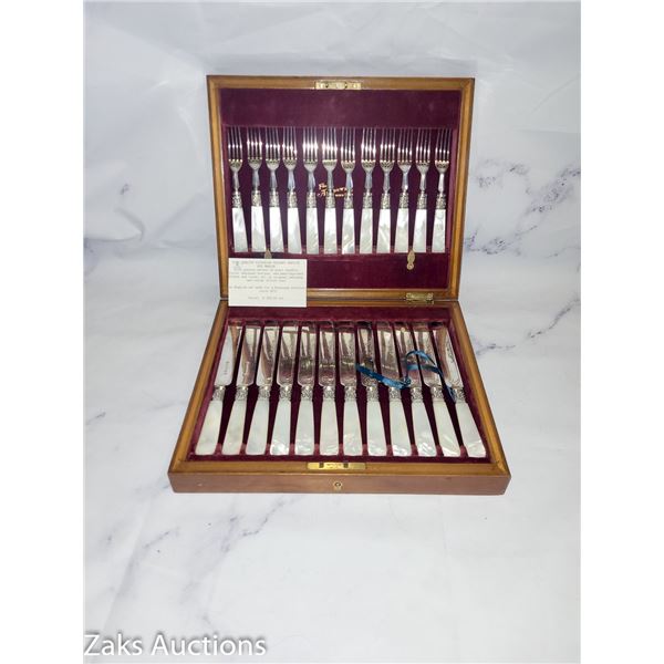 Quality Dessert Service Set for 12 Complete Genuine Mother of Pearl Handles. Made in England for Canadian Retailer,Price on set $900.00 Ashdown'...