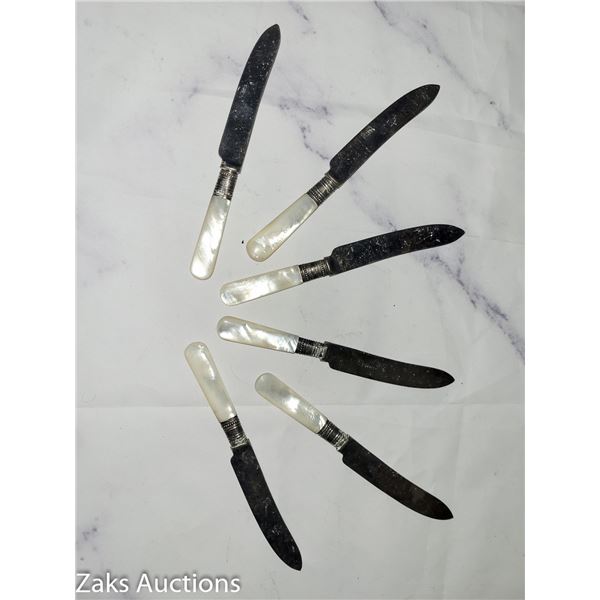 Lot of Misc Mother of Pearl Silver Plate, Set of 6 Bread Knives