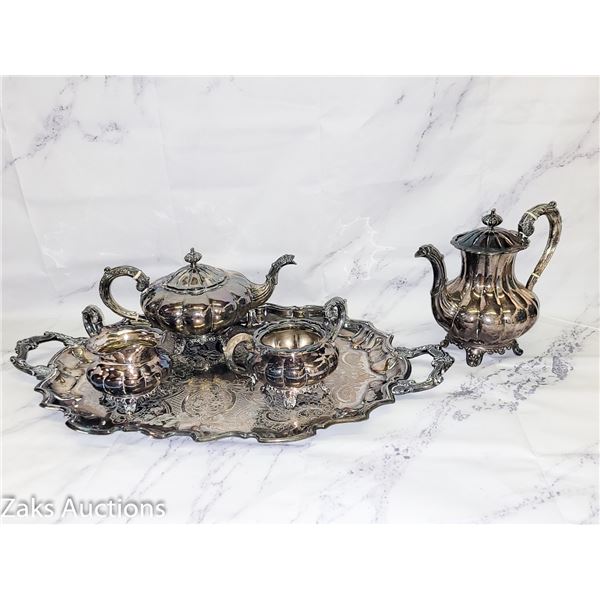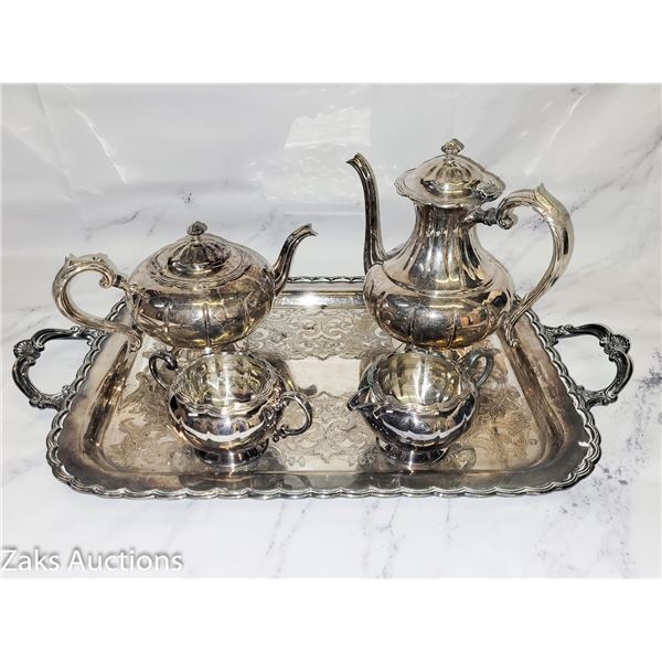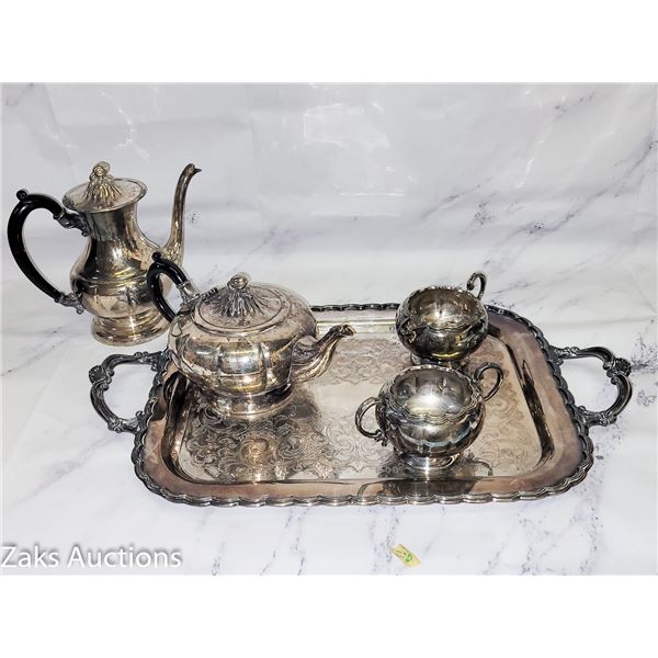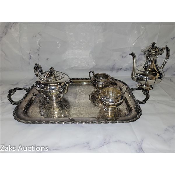 Silver Plate Coffee & Tea Service Set w/Tray - Creamer Birks Regency +