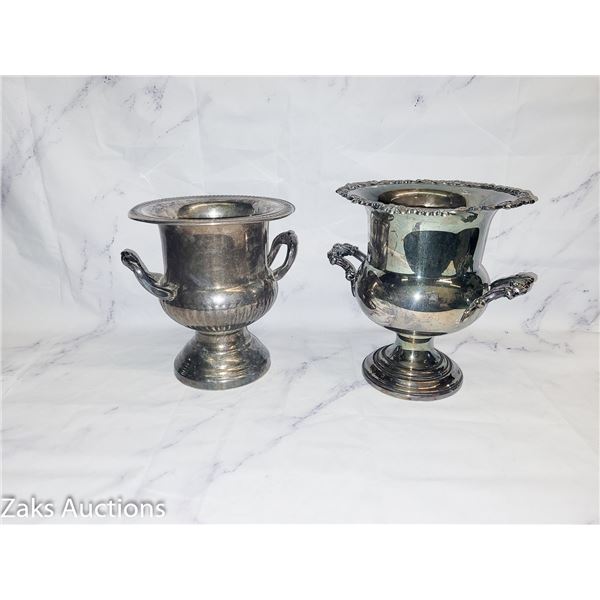 2 Loving Cups - Silver Plate - 10" Tall, 9" Wide and 9.5" x 11"