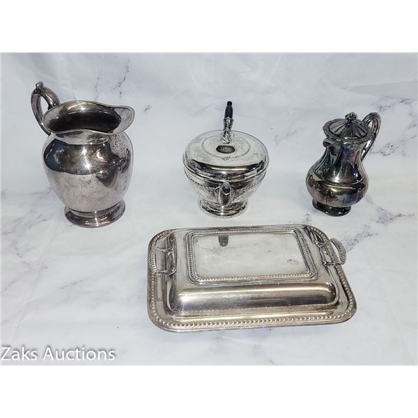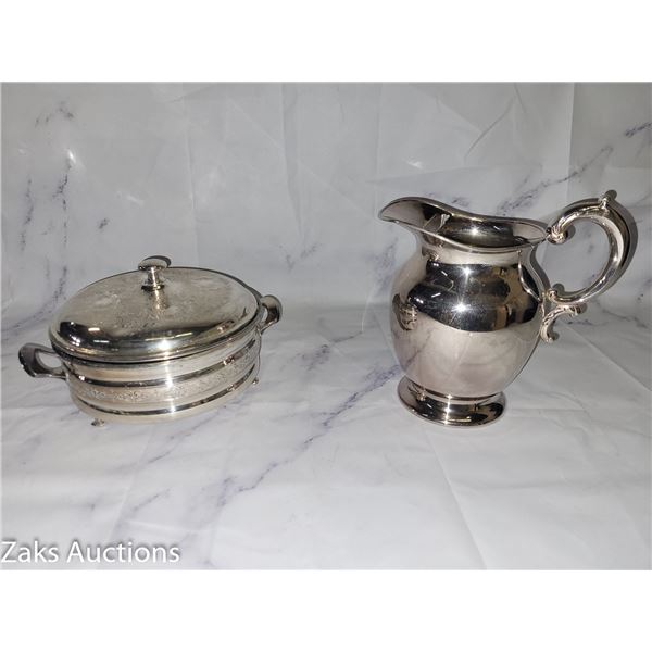Covered Serving Dish Silver Plate & Silver Plated Water Pitcher, Birks Regency +