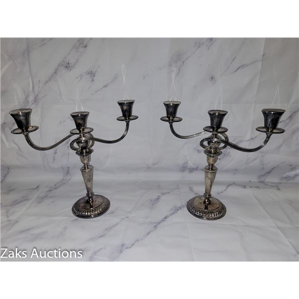 Lot of 2 Silver Plate Candle Holders w/ Candle Holder Toppers, Birks Regency