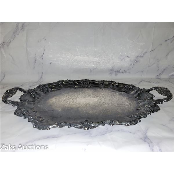 Huge Ornate Silver Plate Tray, Malboro Plate 27" x 18.5", "Old English" reproduction (Ebay sold 120.