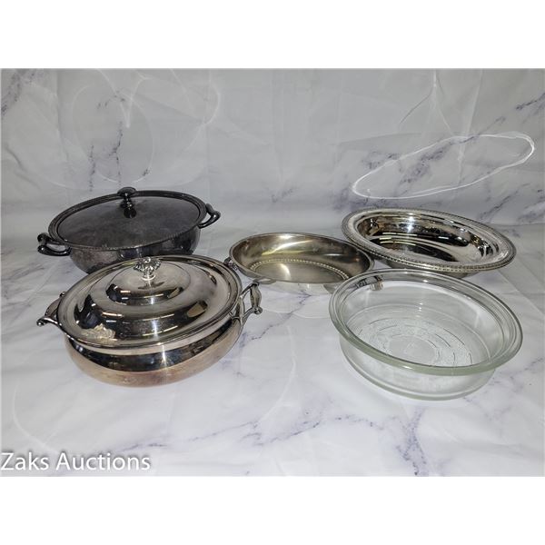 Large Bin Trays & Teapot Coffee Pots Silver Plate & Misc