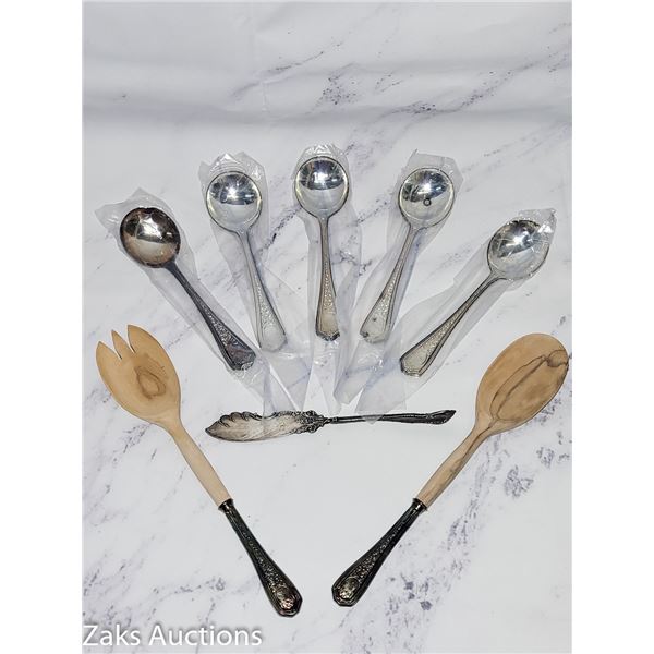 Silver Plate Soup Spoon & Salad Fork/Spoon Set + Butter Knife, WM Rogers, Birks Regency