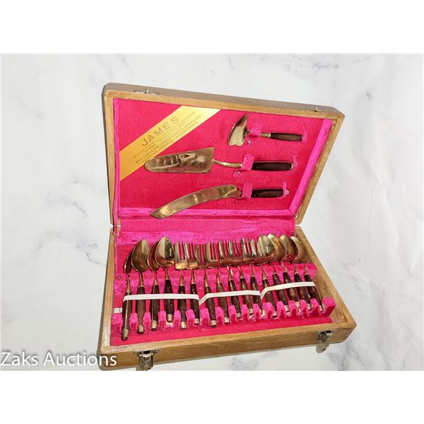 Vintage "James" Teak & Brass Dessert Cutlery Set ($50.00 USD)
