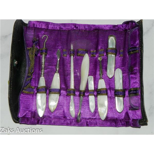 Victorian Mother of Pearl Roll Up Manicure/Travel Set