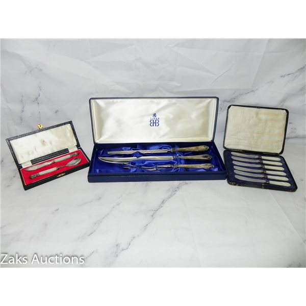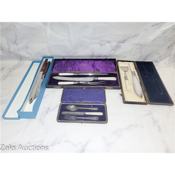 Lot of 2 Carving Sets1 Childs Cutlery in Case - 1 Silver Plate Items