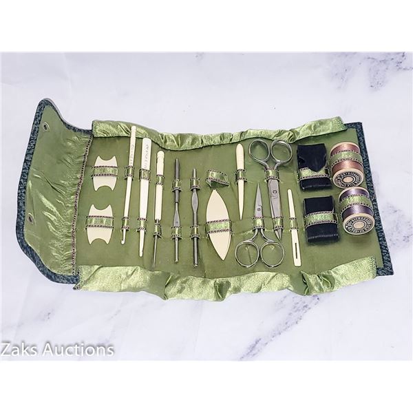 Antique French Ivory Roll Up Sewing Set - Complete ($200.00)