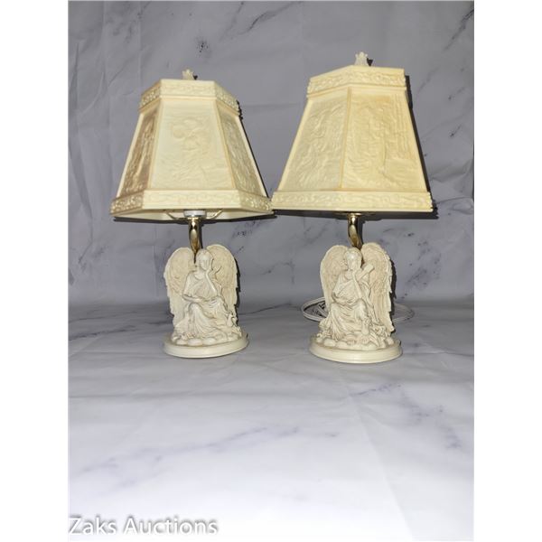 Lot of 2 Small Angel Lamps 11" Discoloured Shades
