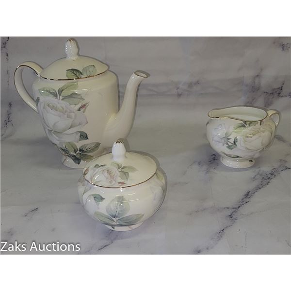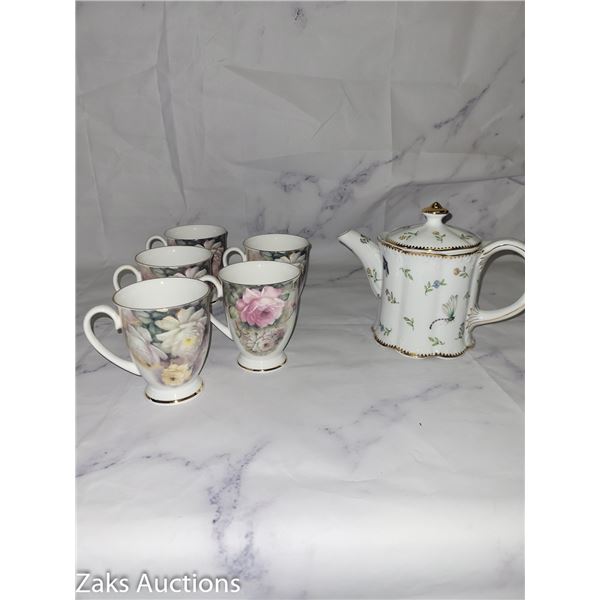 Lot of 5 "Rose Blossom" Mugs Royale Garden Staffordshire + Godinger & Co. Primitive China Teapot