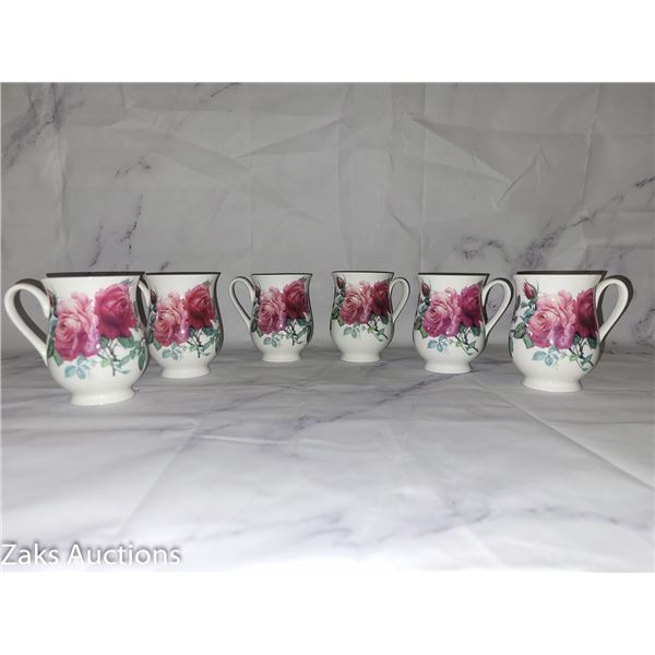 Lot of 6 Roy Kirkham English Rose China Mugs