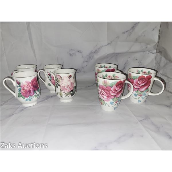 Lot of 7 Various Styles Roy Kirkham English Rose Mugs, 1 has chip on base