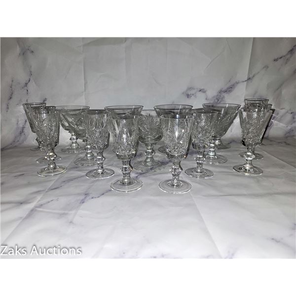 Lot of Pinwheel Crystal Glasses - 7 Parfait/Champagne & 10x Sherry Glasses