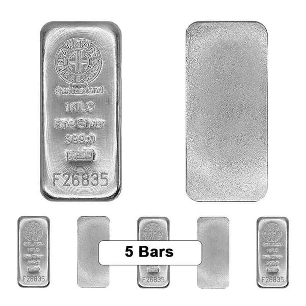 Lot of 5 - 1 Kilo Argor Heraeus Silver Cast Bar .999 Fine (Sealed) 160.75 oz ea,