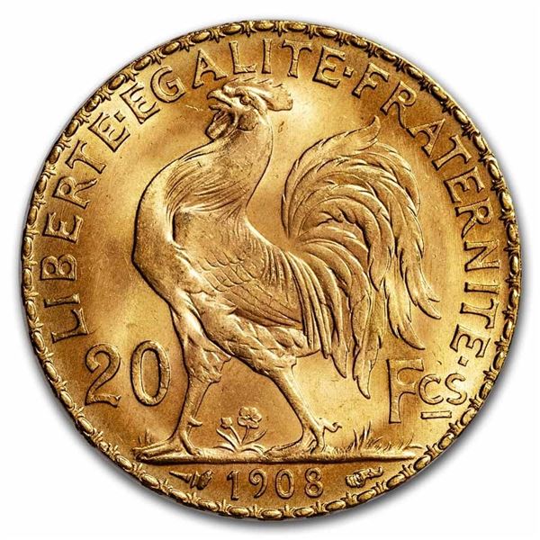 France Gold 20 Francs French Rooster Coin (1899-1914) AU AGW .1867 oz53 - France Gold 20 Francs French Rooster Coin (1899-1914) AU AGW .1867 oz