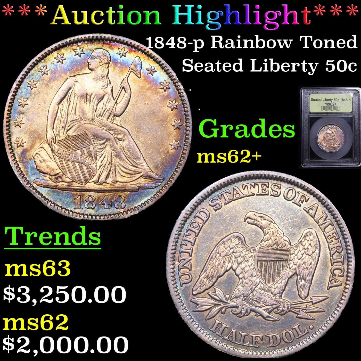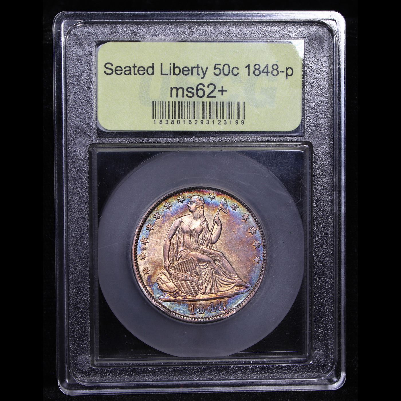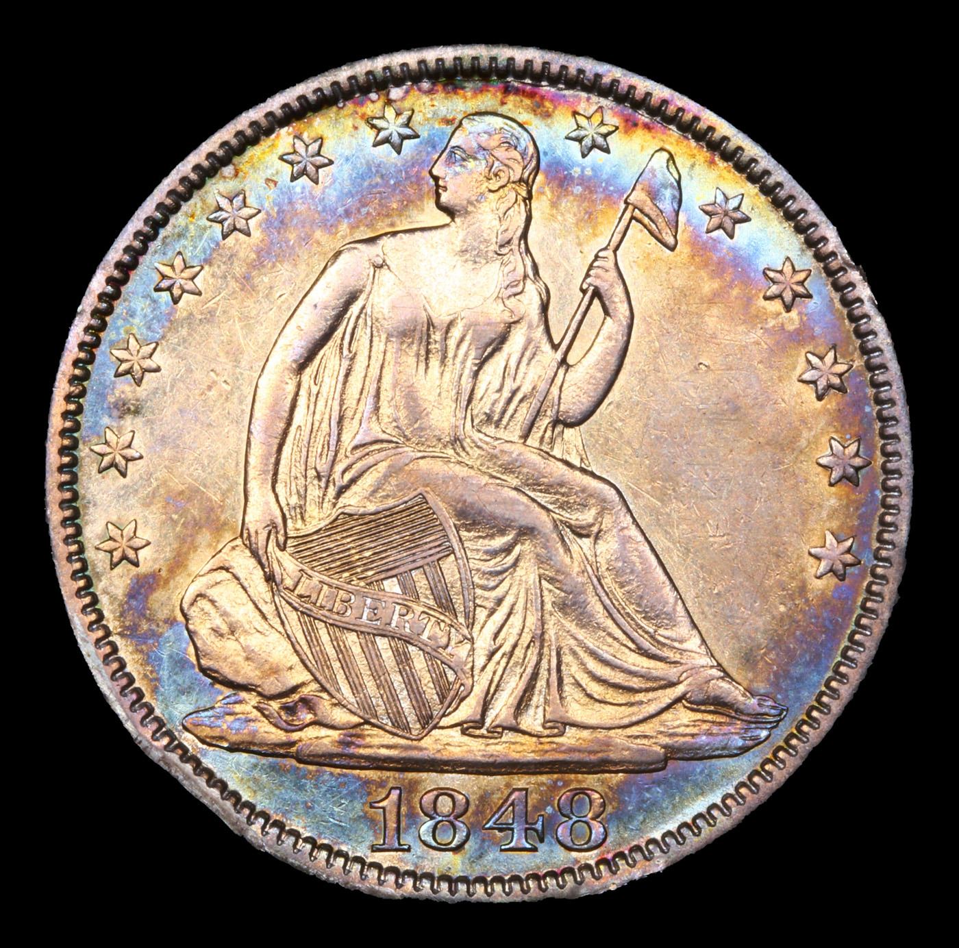 ***Auction highlight*** 1848-p Rainbow Toned Seated Half Dollar 50c Graded Select Unc By USCG. A Corey's Pick, Bid to Win, Don't let it get Away Coin