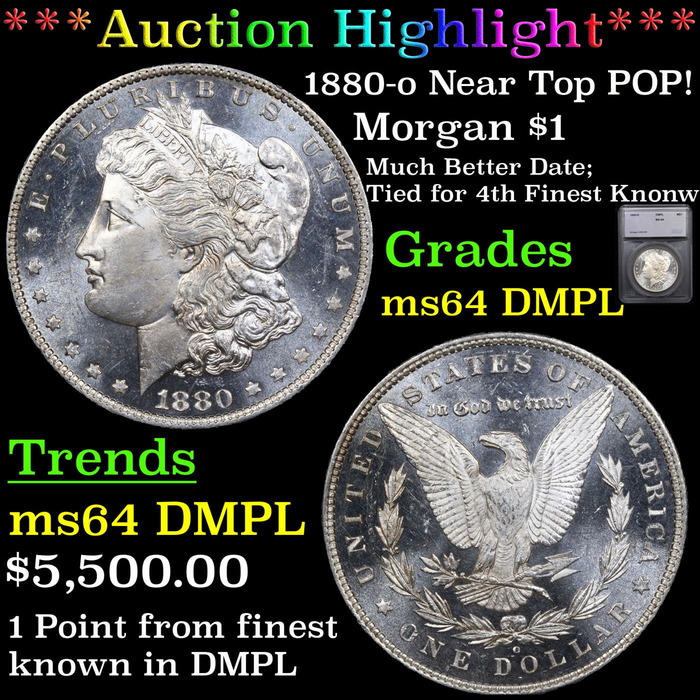 ***Auction highlight*** 1880-o Near Top POP! Morgan Dollar $1 Graded ms64 DMPL By SEGS. A Corey's Pick, Bid to Win Coin