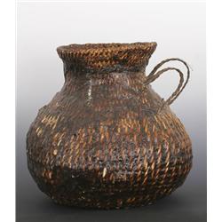 Paiute Water Basket. 9 ½” x 10". Horsehair handles, Pitch covered. Excellent condition. (est $600-800)