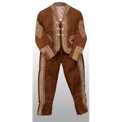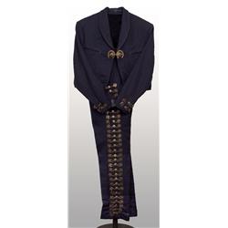 Mexican Man’s Charro Outfit. Typical brass ornaments decorate both the coat and pants. Early 20th Century. Fine condition. (est $400-500).