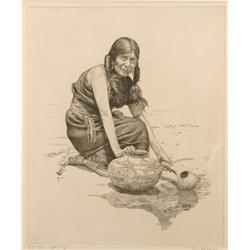 Charles Sindelaer (1885-1947). "At the Spring". Etching of Hopi Girl, 10” x 8 ½”. Framed. Fine condition. (est $500-600)