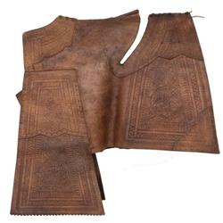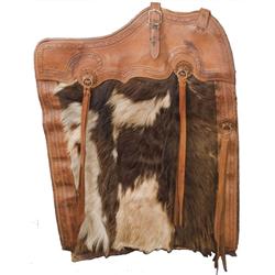 Pair of Mexican Armas. Embossed leather inset with hair on cowhide. These fit over the horn and provided the same protection to a rider as chaps. Thes