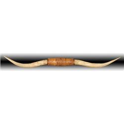 Mounted Set of Longhorns. Nicely decorated with embossed leather center. 77" wide. Fine condition. (est $600-800)