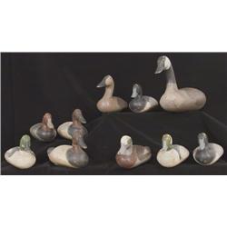 Collection of Goose and Duck Decoys. 1 Goose and 9 duck decoys. Some show cracking. c. 1930s. (est $1,200-1,500)
