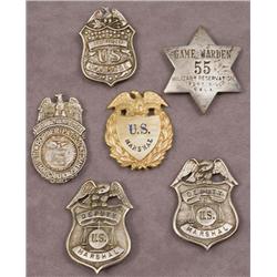Badge Collection. Six Marshall, Game Warden and Border Patrol badges. (est $600-800). All items appear to be reproductions made by a company, no longe