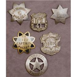 Badge Collection. Six police, prison, sheriff, and marshall badges. 2" to 2 ½” wide. (est $600-800). All items appear to be reproductions ...