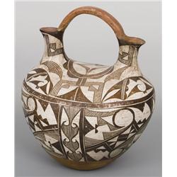 Acoma Wedding Vase. 13" x 10 ½”. Elaborate black on white decoration.