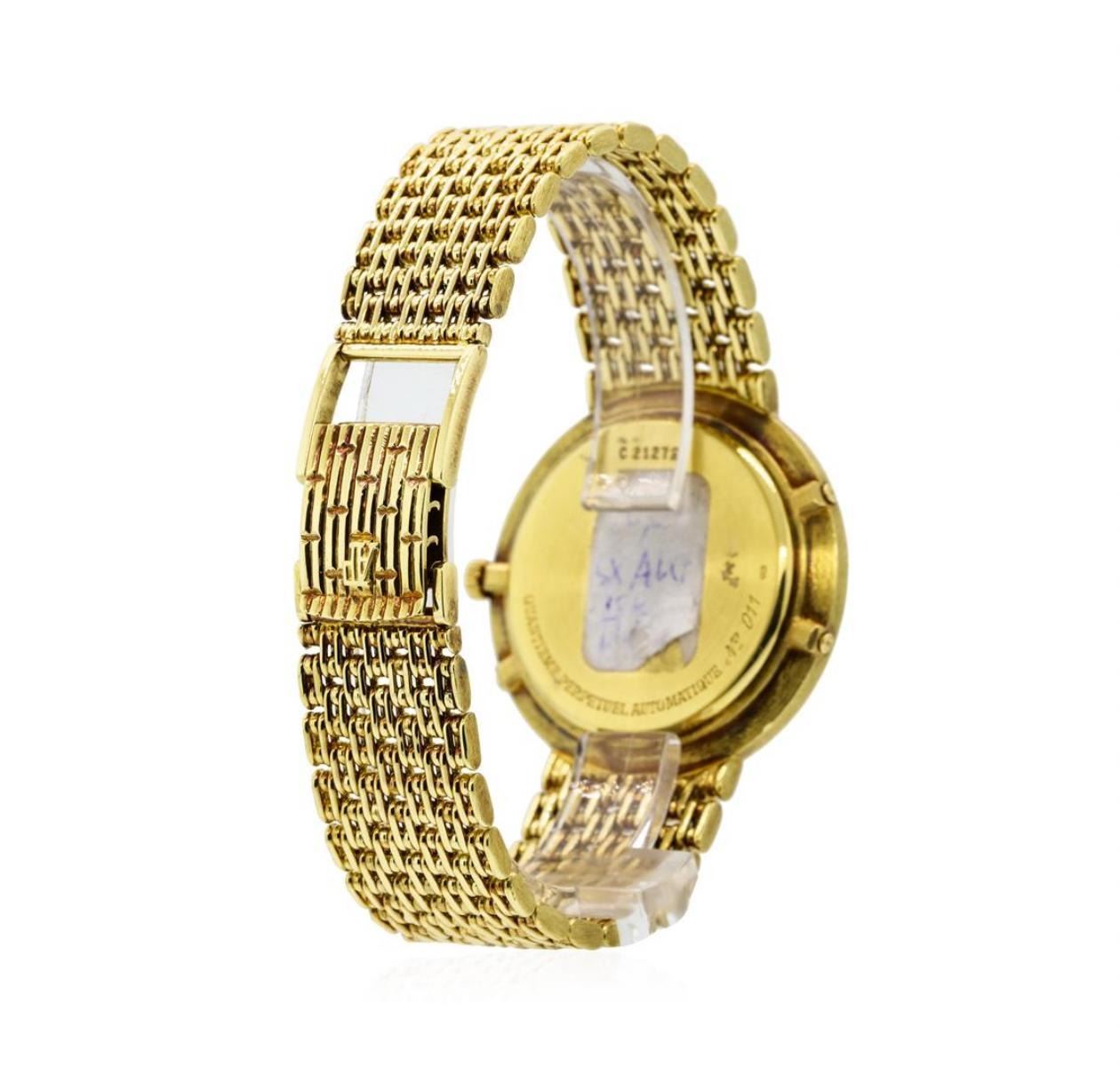 One Audemars Piguet 18KT "Quantieme Perpetuel Automatique No. 11" yellow gold automatic wristwatch with a case measuring 38 millimeters, gold pointed baton-type hands with a gold dial and stick markers. The watch has a sapphire crystal with a diamond and ruby set bezel with four sub-dials with one featuring the moon phase. Serial number C21272.
