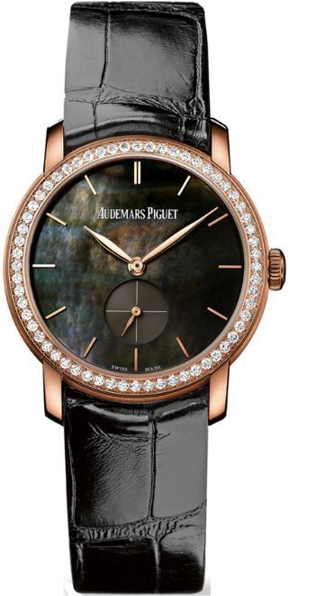 Model: 77240OR.ZZ.A001CR.01 - CASE = [Material:18kt Rose Gold], [Case Diameter:33], [Case Thickness:7.15mm], [Bezel:Fixed with Diamonds], [Case Back:Skeleton], [Water Resistant:20 Meters - 60 Feet], [Crystal:Scratch Resistant Sapphire], DIAL = [Color:Black Mother of Pearl], MOVEMENT = [Type:Manual Winding], [Crown:Push In], BAND = [Clasp:Tang], [Type:Black Alligator Leather], (Usually ships in 1 to 2 weeks.)