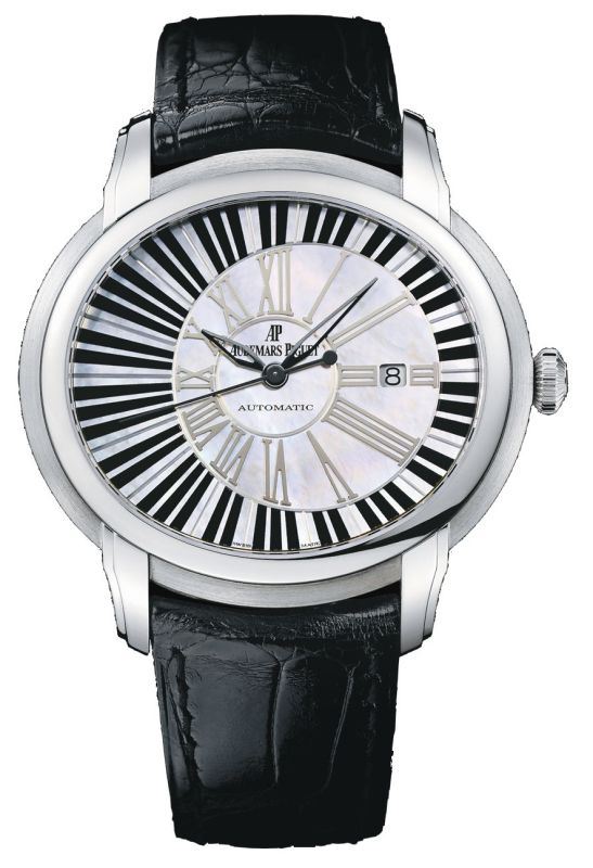 Model: 15325BC.OO.D102CR.01 - CASE = [Material:18kt White Gold], [Case Diameter:45], [Case Thickness:8.90mm], [Bezel:Fixed], [Case Back:See-Thru Sapphire], [Water Resistant:20 Meters/65 Feet], [Crystal:Scratch Resistant Sapphire], DIAL = [Color:Mother of Pearl], MOVEMENT = [Type:Automatic Self Winding], BAND = [Clasp:Deployment], [Type:Black Crocodile Leather], (Usually ships in 1 to 2 weeks.)