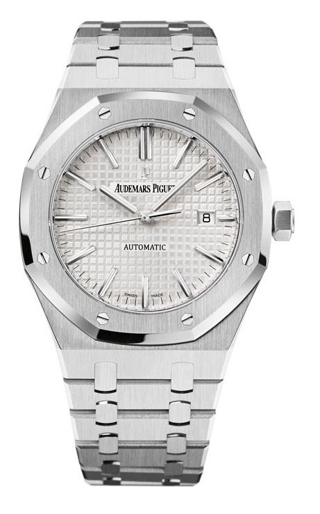 Model: 15400ST.OO.1220ST.02 - CASE = [Material:Stainless Steel], [Case Diameter:41], [Case Thickness:9.80mm], [Bezel:Fixed], [Case Back:See-Thru Sapphire], [Water Resistant:50 Meters/150 Feet], [Crystal:Scratch Resistant Sapphire], DIAL = [Color:Silver], MOVEMENT = [Type:Automatic Self Winding], [Crown:Screw Down], BAND = [Clasp:Push Button Foldover Clasp], [Type:Brushed & Polished Stainless Steel], (Usually ships in 1 to 2 weeks.)