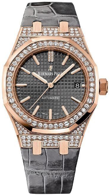 Model: 15452OR.ZZ.D003CR.01 - CASE = [Material:18kt Rose Gold with Diamonds], [Case Diameter:37], [Case Thickness:9.80mm], [Bezel:Fixed with Diamonds], [Case Back:Skeleton], [Water Resistant:50 Meters - 165 Feet], [Crystal:Scratch Resistant Sapphire],; DIAL = [Color:Grey],; MOVEMENT = [Type:Automatic], [Crown:Screw Down],; BAND = [Clasp:Deployment], [Type:Grey Leather], (Usually ships in 1 to 2 weeks.)