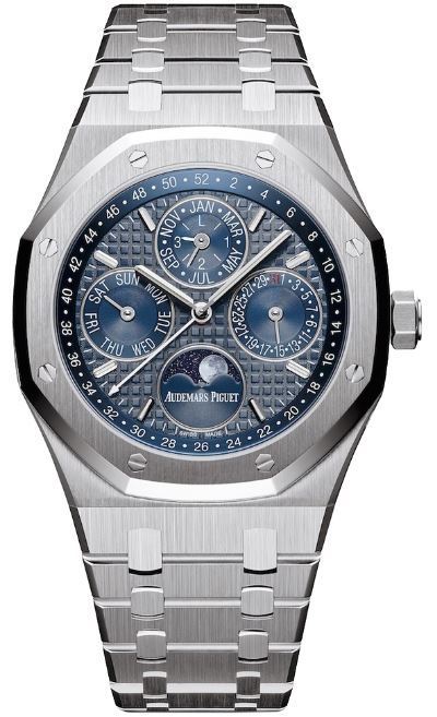 Model: 26574ST.OO.1220ST.02 - CASE = [Material:Stainless Steel], [Case Diameter:41], [Case Thickness:9.5mm], [Bezel:Fixed], [Case Back:Skeleton], [Water Resistant:20 Meters - 60 Feet], [Crystal:Scratch Resistant Sapphire], DIAL = [Color:Silver], MOVEMENT = [Type:Automatic Perpetual Calendar], [Crown:Screw Down], BAND = [Clasp:Deployment], [Type:Brushed and Polished Stainless Steel], (Usually ships in 1 to 2 weeks.)
