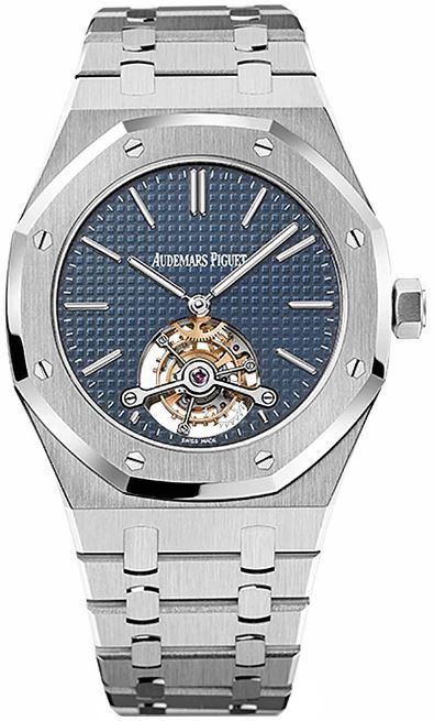 Model: 26510ST.OO.1220ST.01 - CASE = [Material:Stainless Steel], [Case Diameter:41], [Case Thickness:8.85mm], [Bezel:Fixed], [Case Back:Skeleton], [Water Resistant:50 Meters - 165 Feet], [Crystal:Scratch Resistant Sapphire], DIAL = [Color:Blue], MOVEMENT = [Type:Manual Winding Tourbillon, Power Reserve Indicator], [Crown:Push In], BAND = [Clasp:Deployment], [Type:Brushed and Polished Stainless Steel], (Usually ships in 1 to 2 weeks.)