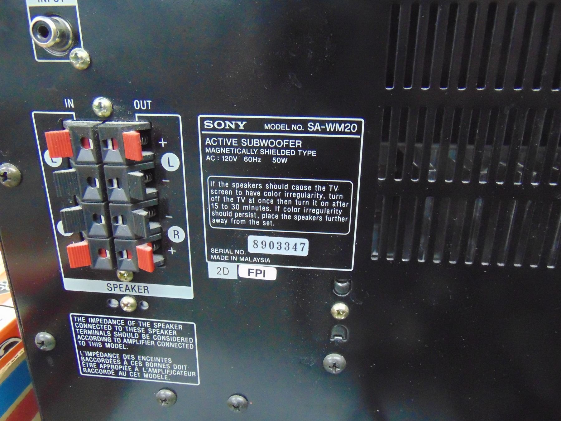 Sony powered sub woofer; model SA-WM20; works