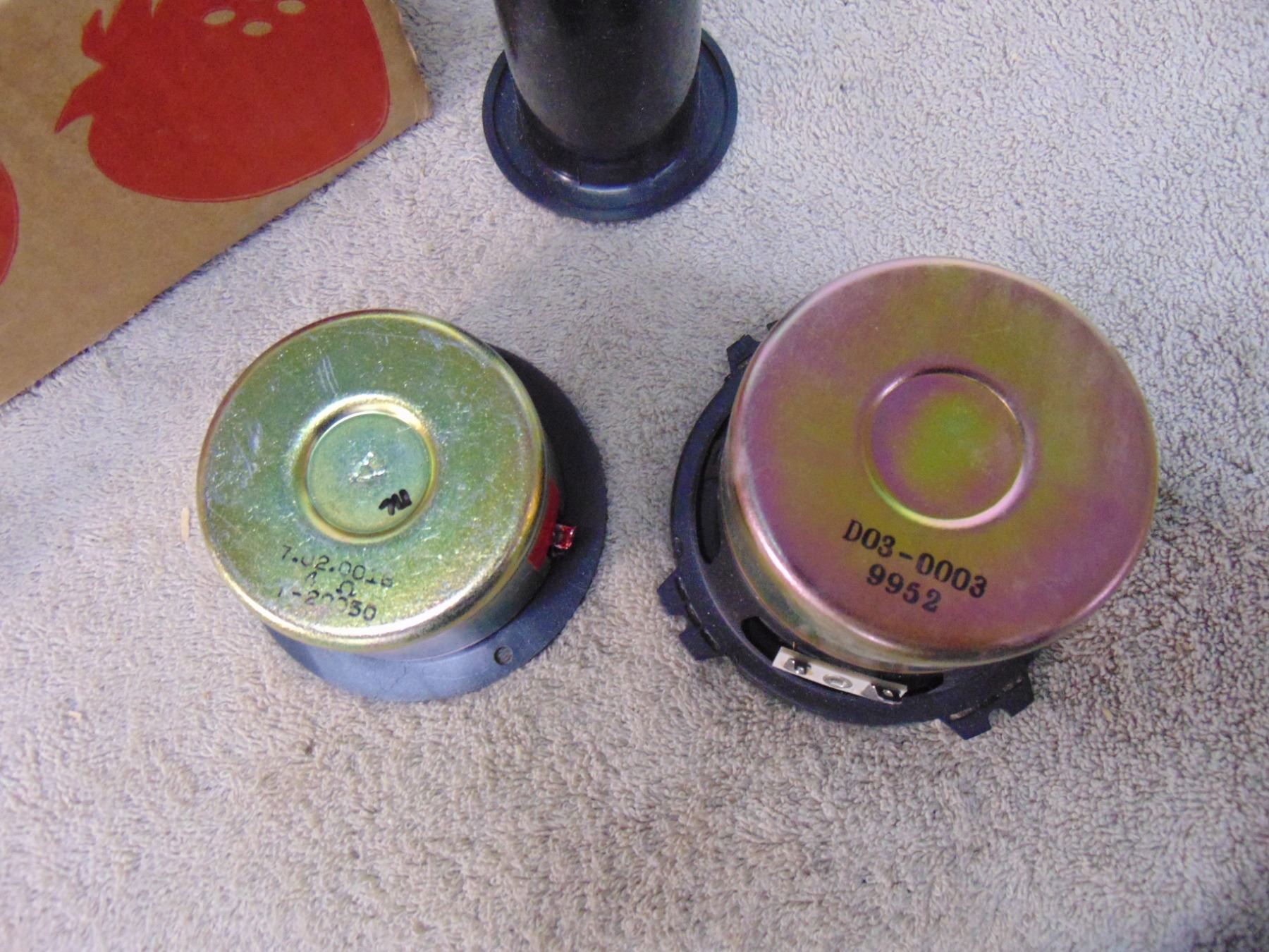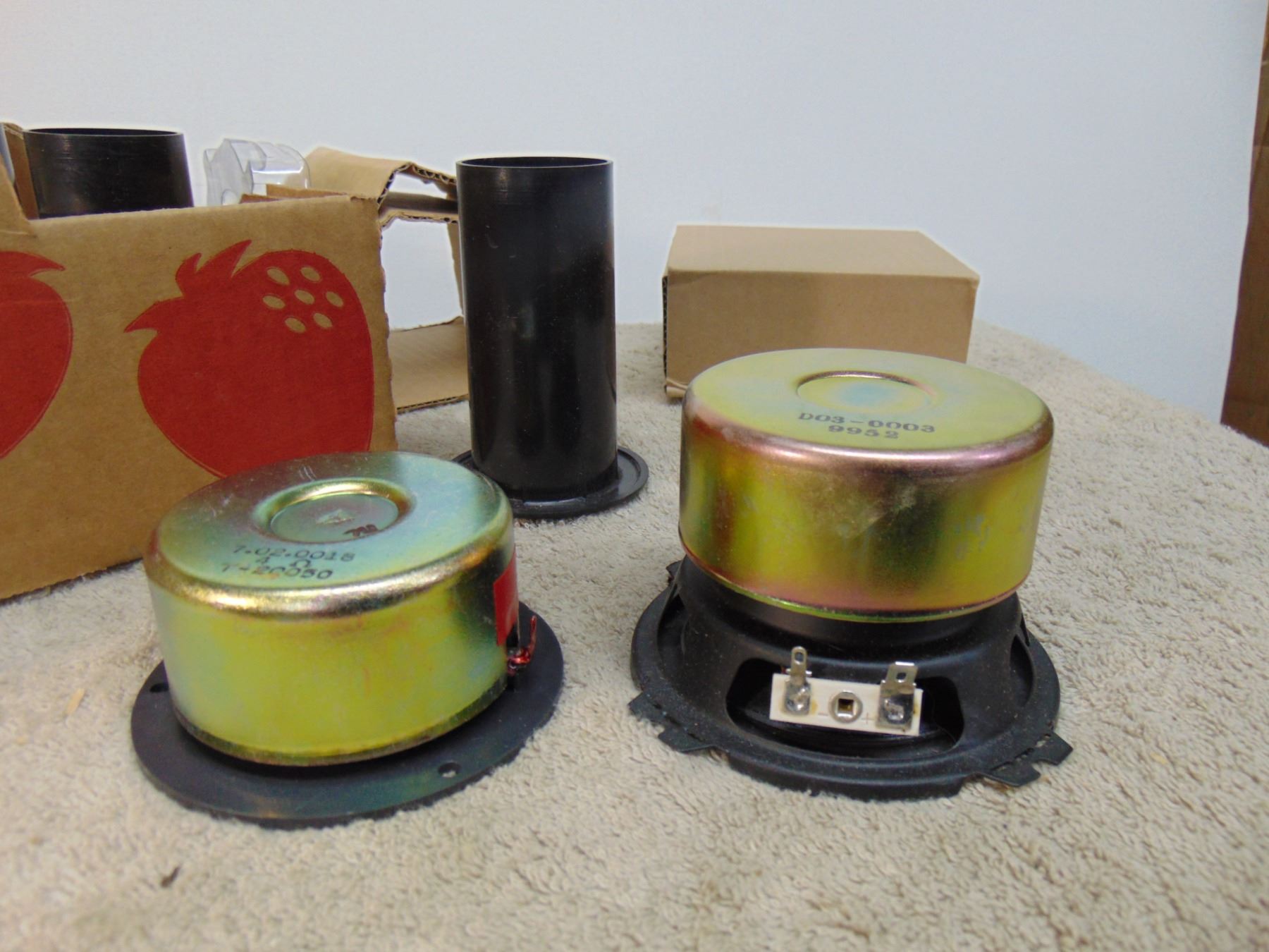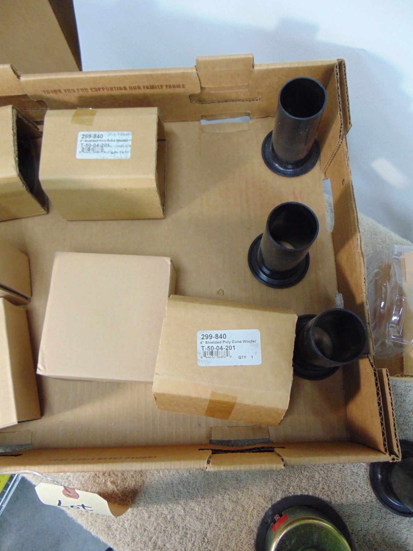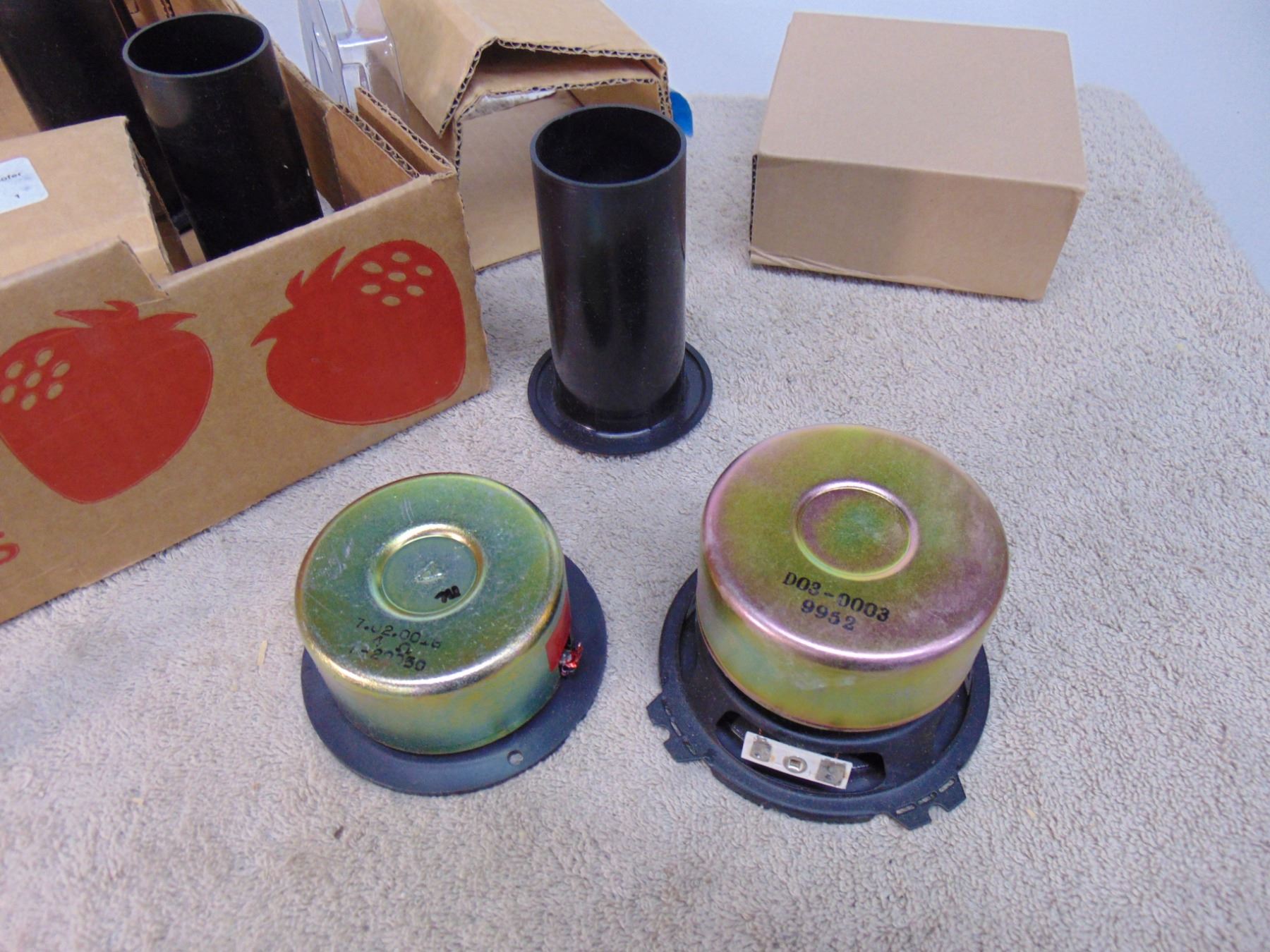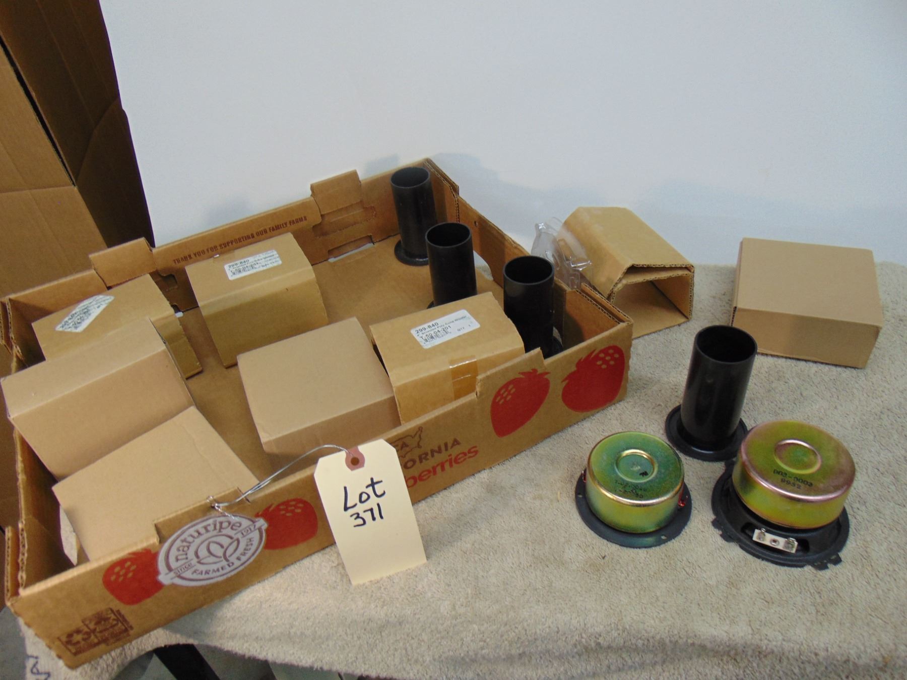Flat of NIB high end audio speakers; includes 4 tweeters and 4 woofers