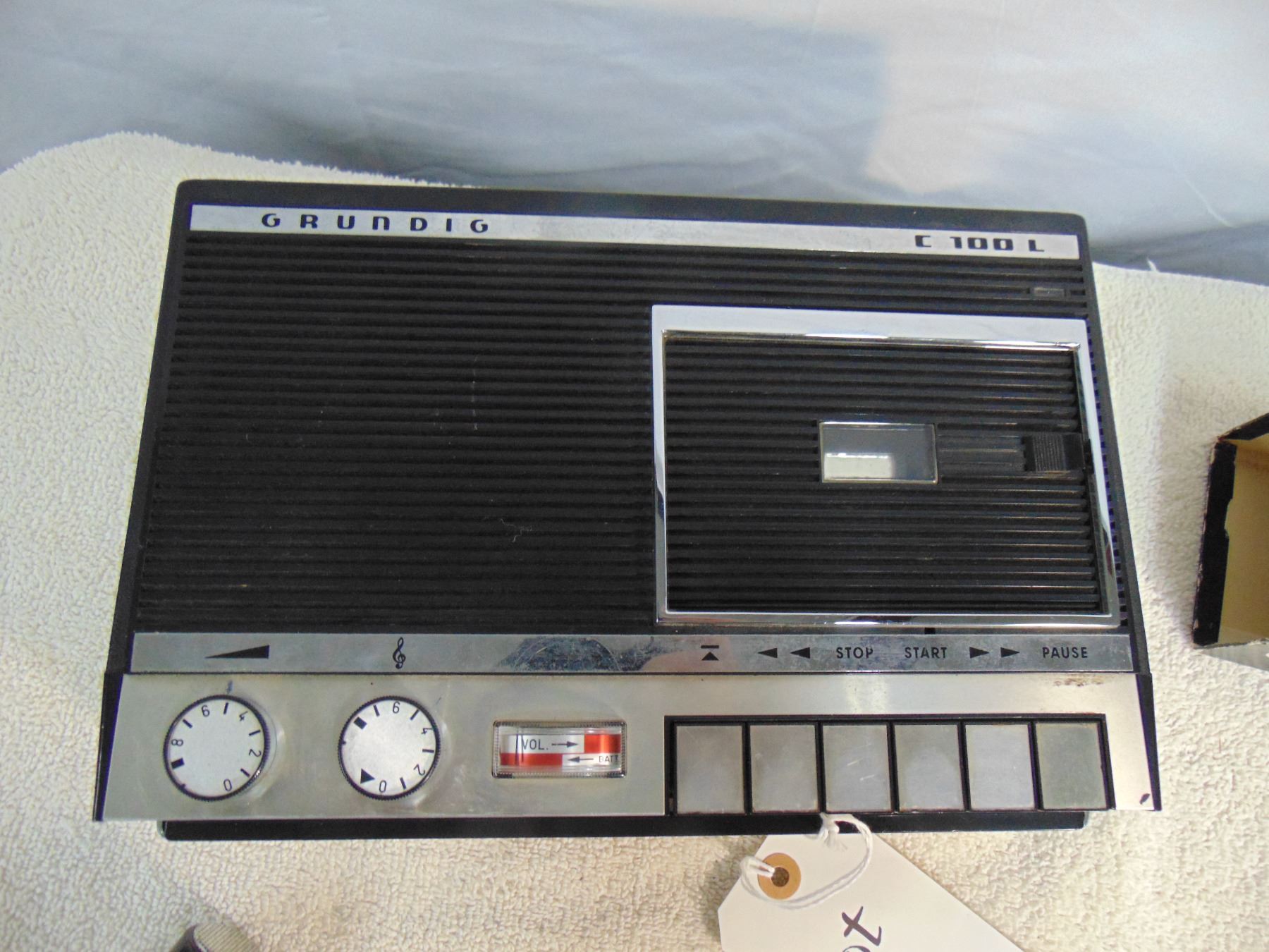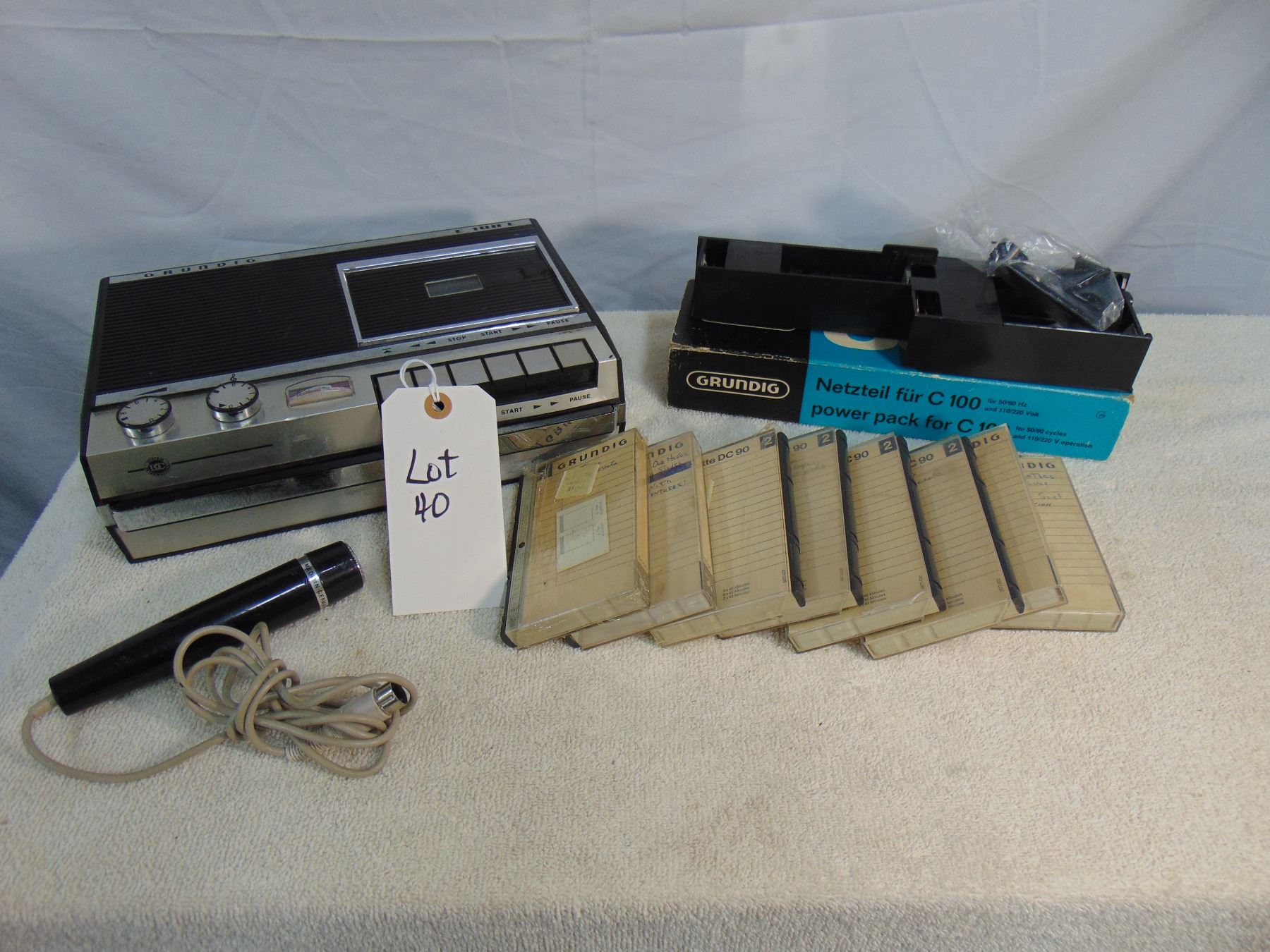 Grundig cassette player/recorder including microphone, cassettes, and accessories