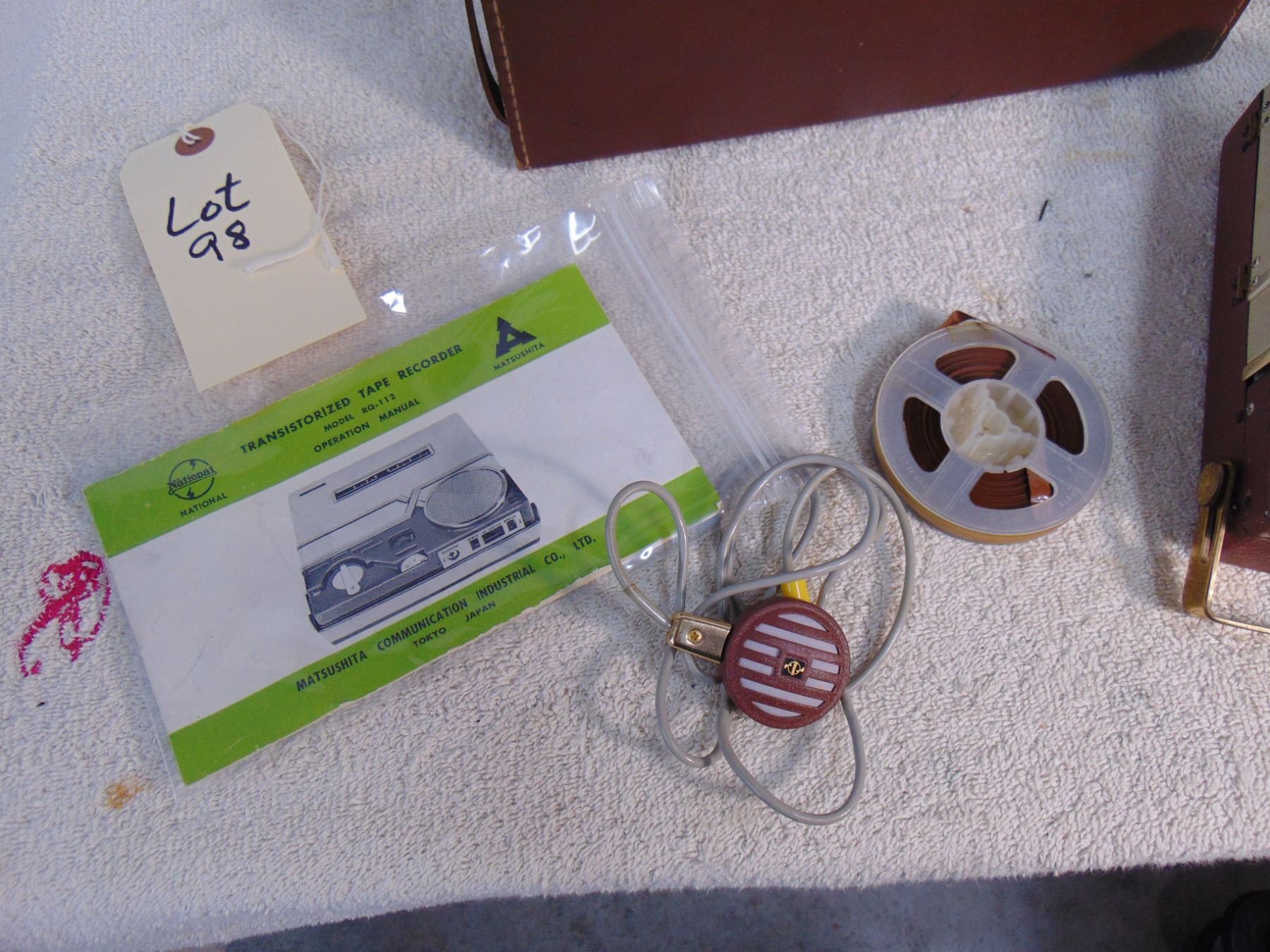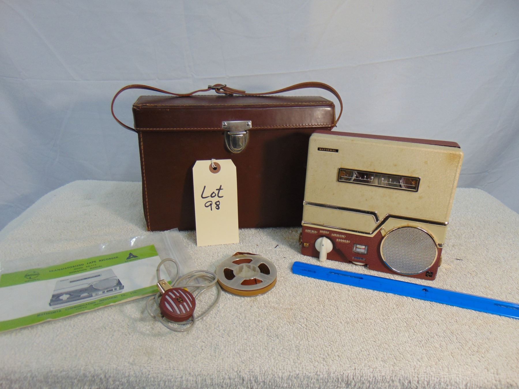 National transistorized tape recorder/3" reel to reel; original carrying case; includes manual and accessories