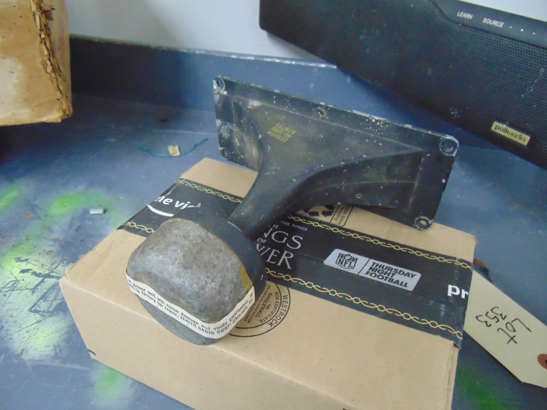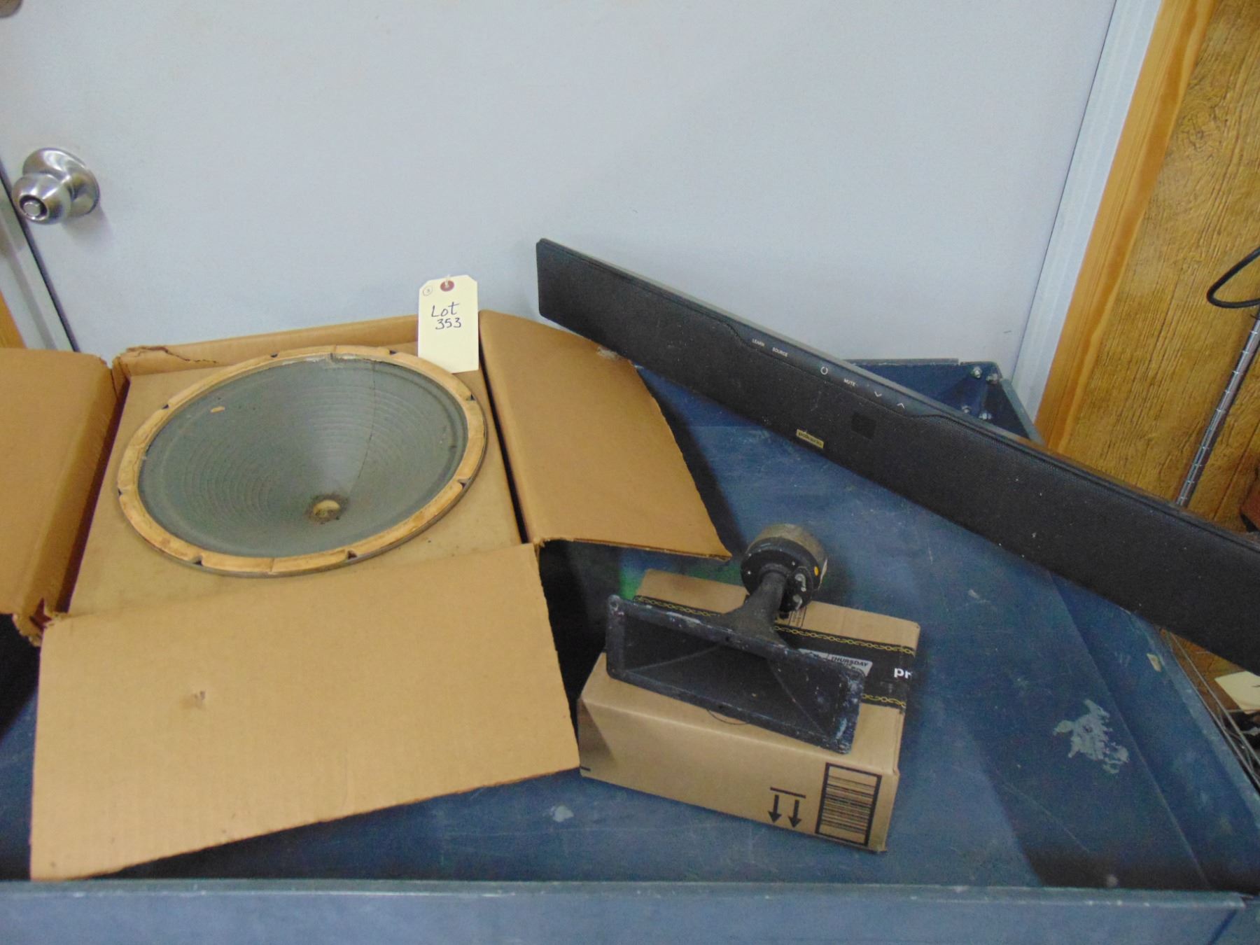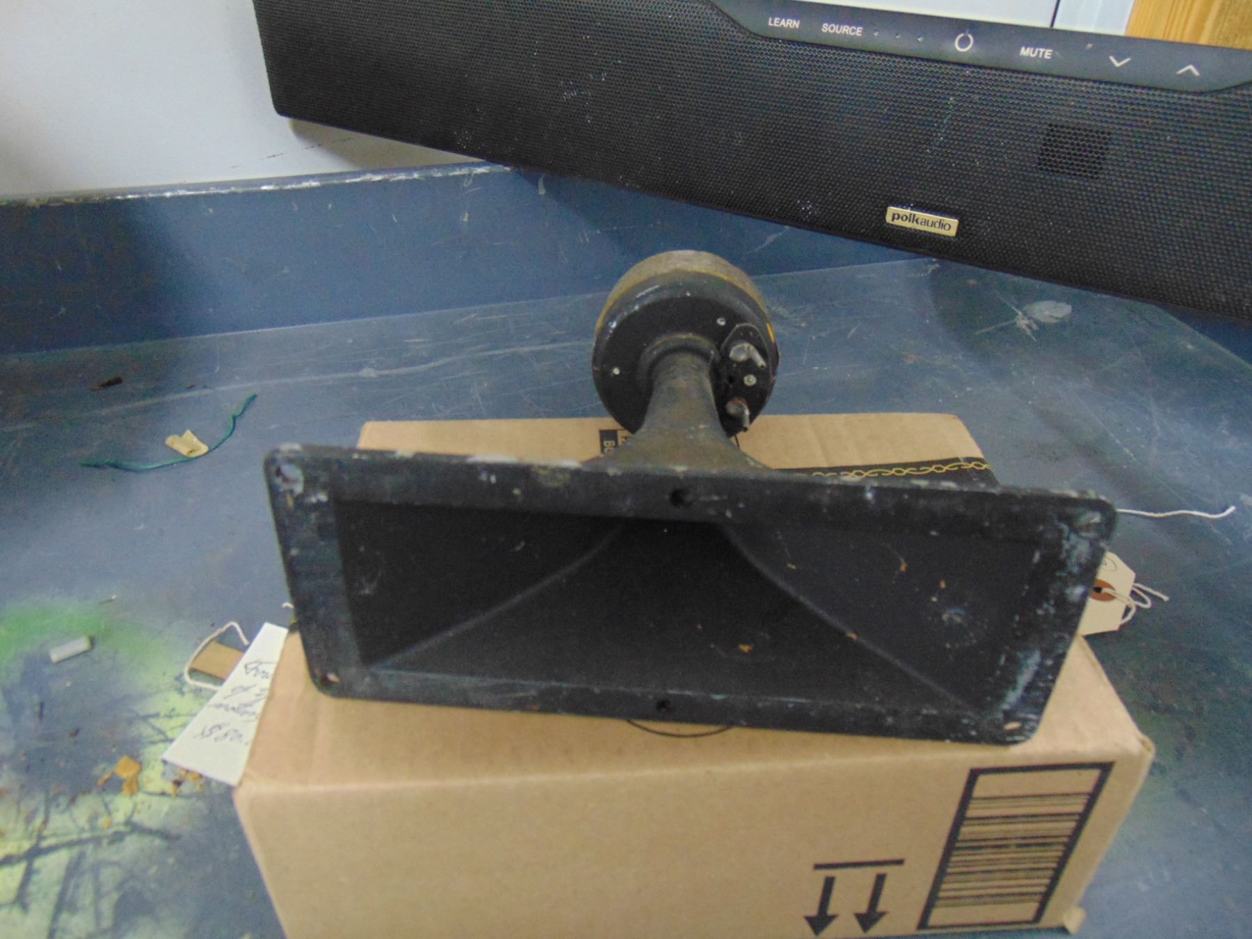 Three speakers: 1) Zenith horn tweeter; 2) Cinaudagraph 12"NOS permanent magnet speaker; 3) PolkAudio Surroundbar 4000 speaker
