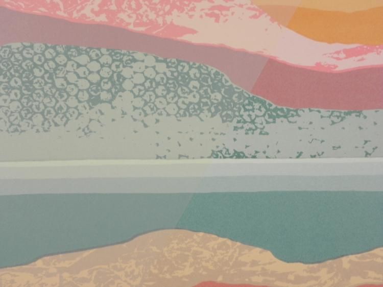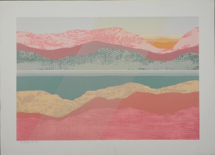 This desert landscape with vivid textures and a ray of sun looks similar to a work by the artist titled "Blue Waterway," although this one is untitled. Artist: Audrey Grendahl Kuhn Title: "Blue Waterway Two"Edition: Numbered from a limited edition of 80Medium: Serigraph on paperSheet size: 29 x 40 inches Condition: Very good; minor margin creasing- could be matted outBiography:Audrey Grendahl Kuhn (1929- ) was born in Chicago, and studied art at the University of Michigan, the College of Architecture and Design, Russell Sage College and the College of St. Rose in Albany, New York. Her pastel landscapes and modern still lifes reflect the energy of their subjects with soft yet bright colors. Her work drew much attention at the New York Art Expo in the 1980's. Later, she spent the winter months in Mexico, where she drew new inspiration from the vibrant scenery. She has since won awards, and is listed in "Who's Who in American Art". Her art can be found in many galleries and corporate and private collections throughout the U.S. and the world.