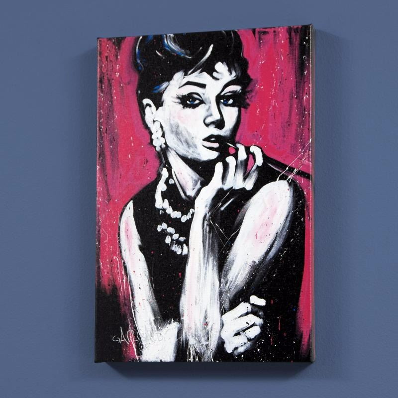 Combining his passions for music and art, David Garibaldi creates stunning visual poetry. "Audrey Hepburn (Fabulous)" is a limited edition giclee on stretched canvas, numbered from the miniature series and bearing the artist's authorized signature. This piece is gallery wrapped and ready to hang. Includes Certificate of Authenticity! Measures approx. 12" x 18" (image). Retail Price $150.00. PRICE INCUDES FREE SHIPPING IN THE U.S. - SHIPPING WILL BE ADDED TO YOUR INVOICE FOR ALL BUYERS OUTSIDE OF THE U.S.